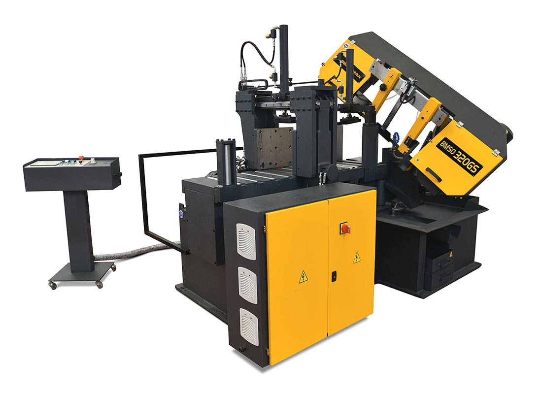 ماشین اره نواری بازویی اتوماتیک بکامک مدل BMSO 320GS ایدهال برای تولید انبوه و برش مواد توپر، لوله و پروفیل را به صورت بندیل میباشد. با قابلیت برش زاویهای بین ۳۰ تا ۹۰ درجه، دارای سیستم تغذیه مجهز به سروو موتور، پنل کنترل PLC با امکان ذخیره ۳۰ برنامه مختلف، همراه گیرههای هیدرولیکی بالا و گیرههای ششضلعی برای برش بندیل میباشد.