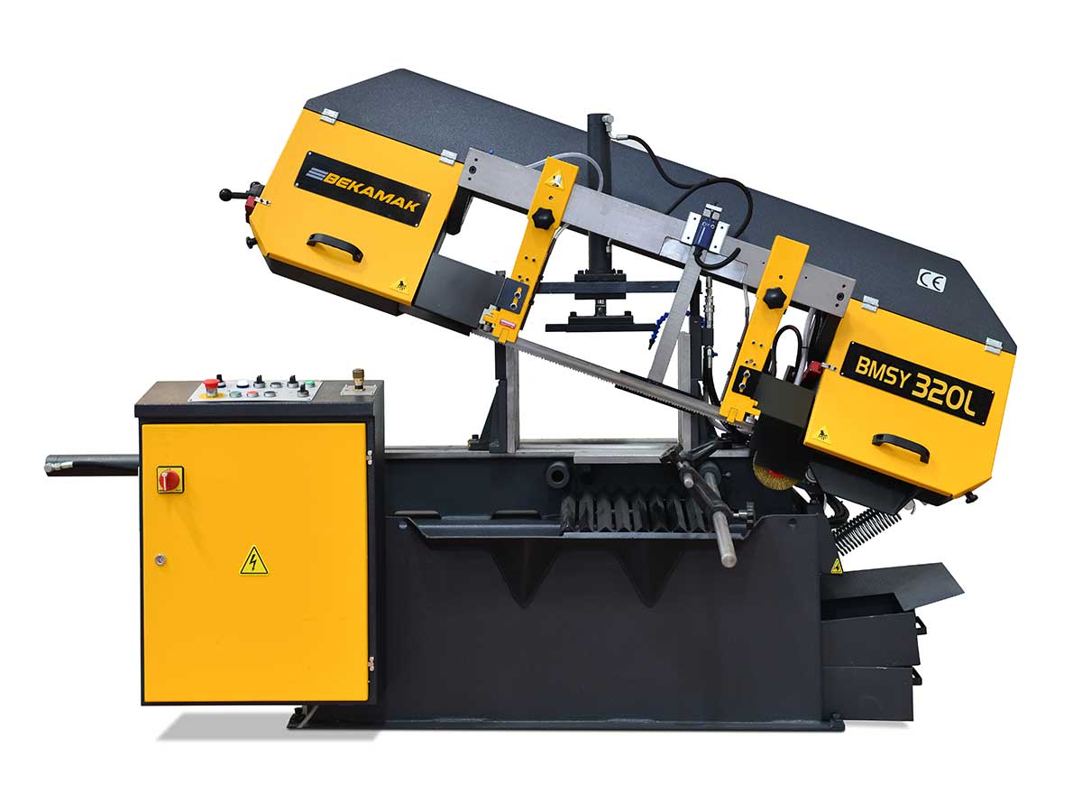 ماشین اره نواری بازویی بکامک مدل BMSY 320L قابلیت برش همه فلزات، لوله و چدن را دارا میباشد. فک دستگاه (کارگیر قطعه) را میتوان تا °45 درجه چرخاند. در دستگاههای نیمه اتوماتیک پس از اتمام برش بازویی دستگاه بافشار هیدرولیک بصورت اتومات به حالت اولیه (شروع برش) باز میگردد. همراه دستگاه یک میز غلطکدار ویک تیغ اره نواری میباشد.