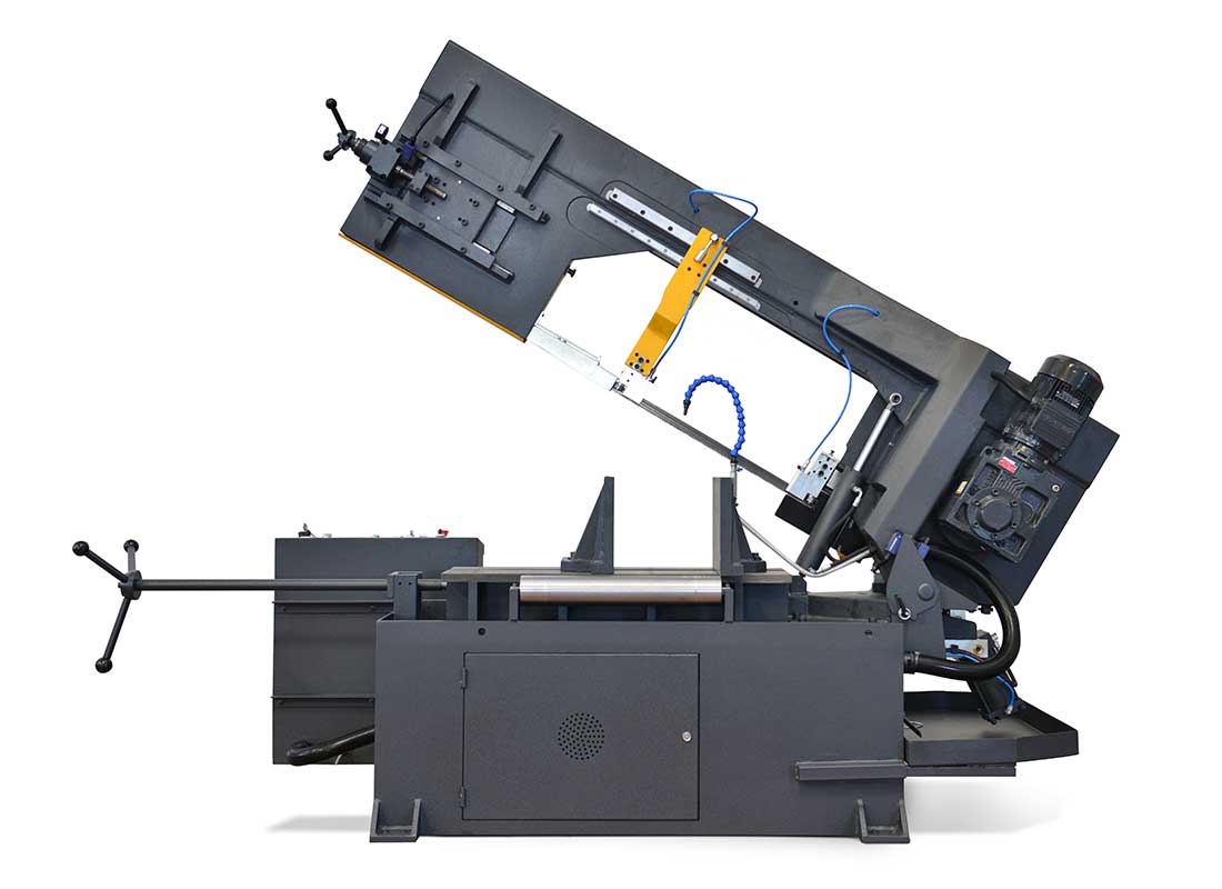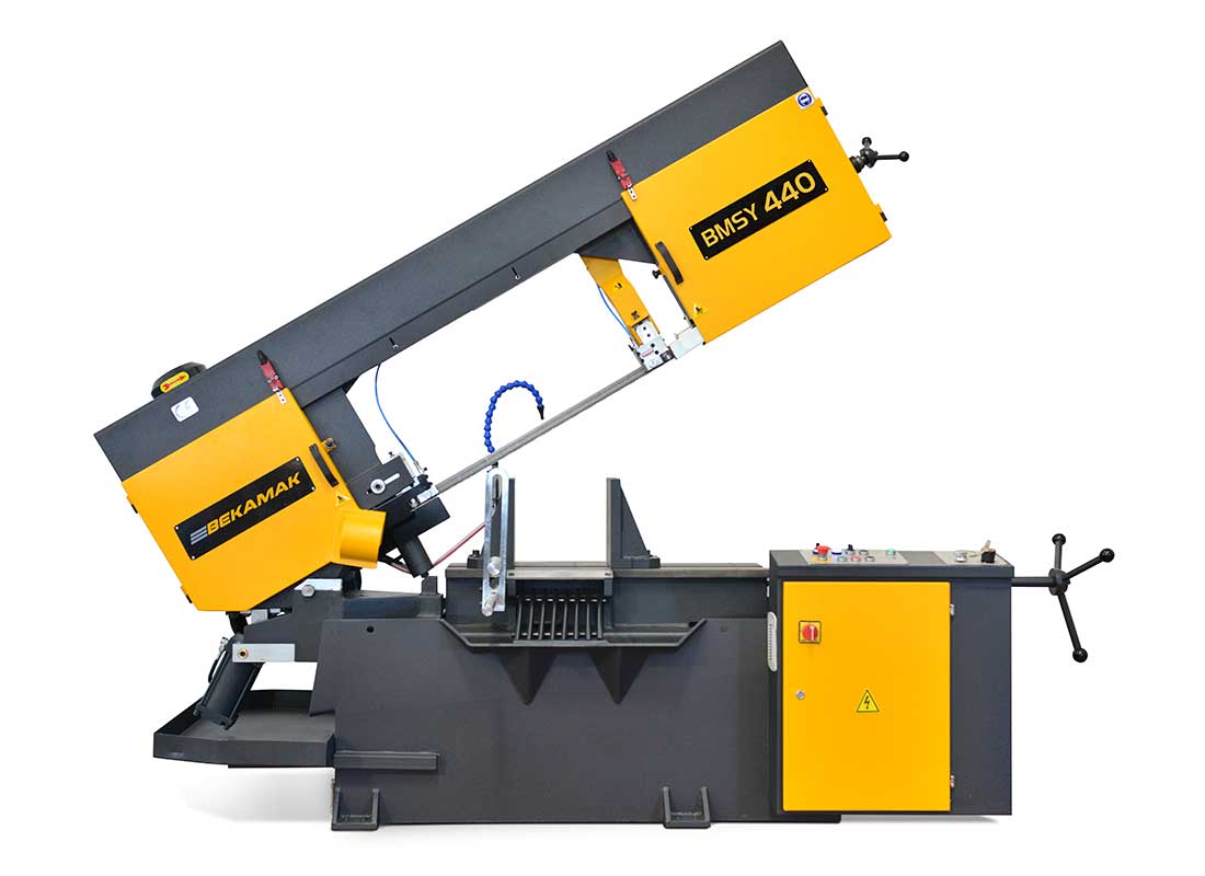 ماشین اره نواری بازویی بکامک مدل BMSY 440 قابلیت برش همه فلزات، لوله و چدن را دارا میباشد. فک دستگاه (کارگیر قطعه) را میتوان تا °45 درجه چرخاند. در دستگاههای نیمه اتوماتیک پس از اتمام برش بازویی دستگاه بافشار هیدرولیک بصورت اتومات به حالت اولیه (شروع برش) باز میگردد. همراه دستگاه یک میز غلطکدار ویک تیغ اره نواری میباشد.