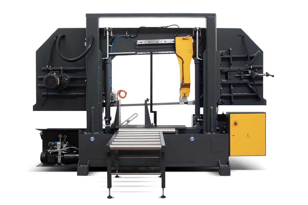 در دستگاههای نیمه اتومات پس از اتمام برش بازویی دستگاه بافشار هیدرولیک بصورت اتومات به حالت اولیه (شروع برش) باز میگردد. همراه دستگاه یک میز ۱.۲ متری ویک تیغ اره نواری میباشد.