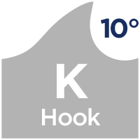 - Hook Tooth K: دندانه هوک تیپ K با زاویه برش ۱۰ درجه مثبت، برای برشهای عمومی، برش پروفیلها، مواد توپر، فولاد و فلزات غیرآهنی مناسب میباشد.